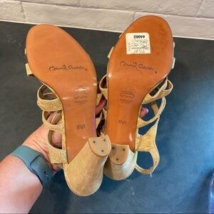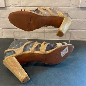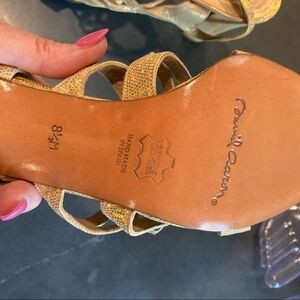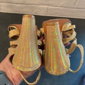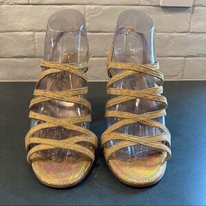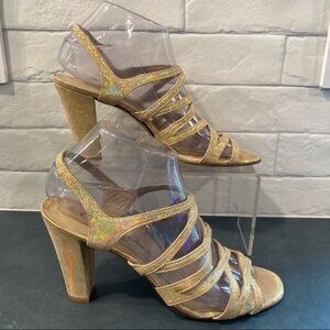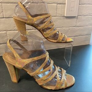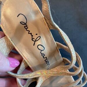 NWT sz 8.5 David Aaron gold metallic iridescent strappy heeled sandals