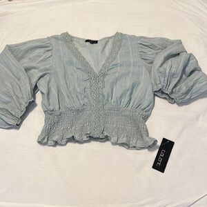 NWT talent size 1X light green puff sleeve lace detail elastic waist crop top
