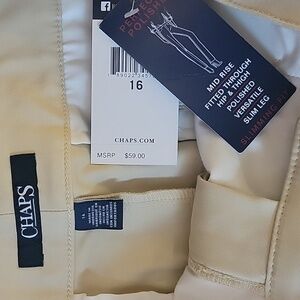 NWT tan Chaps Button And Zip Slacks Plus Size 16 super stretch slimming Pants mid rise