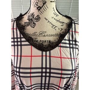 NWT tan and black plaid long sleeve top. Bottom, black part of the sleeve is a heavier material ,lace trim, neckline