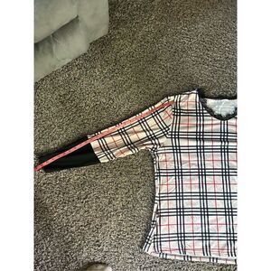 NWT tan and black plaid long sleeve top. Bottom, black part of the sleeve is a h