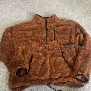New with tags teddy bear pullover. Feels like a teddy bear and so soft!!! Brown with black zippers. Drawstring waist. Size is XXXL. 100% polyester.