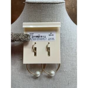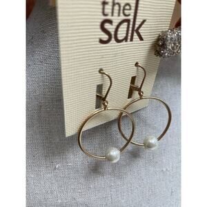 NWT the Sak Matte Gold Circle Hoop Earrings w/ Pearl Detail & Lever Back