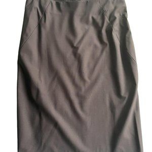 This beautiful black pencil skirt still has tags but was unfortunately damaged-- I have included a picture with a quarter for scale. The damage is small, dark, and located high on the hip so it's barely noticeable. The damage means a great deal for you! The back has a cool double slit and the skirt is 25" in height.