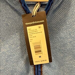 NWT vineyard vines men’s size medium Hull blue calm water quarter zip.