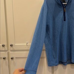 NWT men’s size medium very soft vineyard vines calm water, quarter zip in hole blue. From shoulder to hem, 28 inches, pit to pit measures 23 inches and sleeves measure 24.5 inches. This quarter zip is so soft and comfortable.