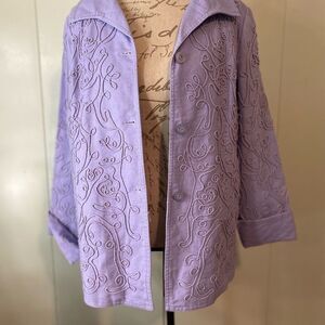 NWT vintage QVC Dialogue purple collared A-Line embroidered blazer Jacket - M
