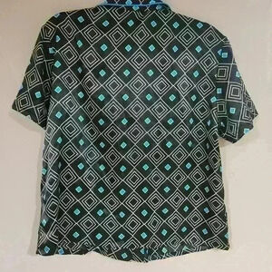 NWT vintage Victoria's secret pijama top size Large white and teal diamond print