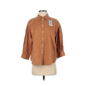 NWT voyageur mersea Orange Linen Balloon Sleeve Button Down XS