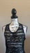 Designed to be worn over swimwear, featuring a sleeveless racerback design in a black lace mesh fabric.