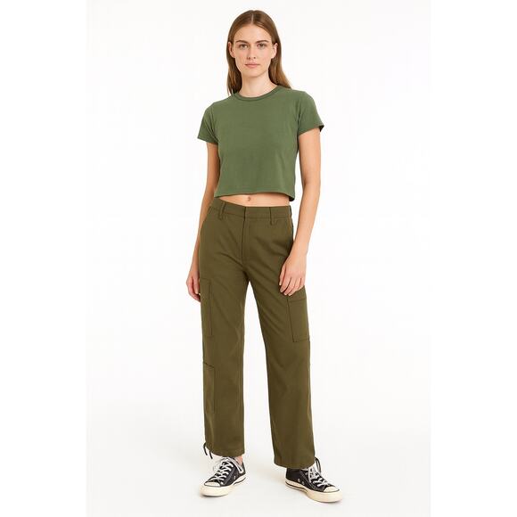 Brand new with tags! On trend Army green 100% cotton cargo pants. Drawstring at bottom hem, big back pockets, two front pockets, and two leg pockets. Wide straight leg. Size 10.