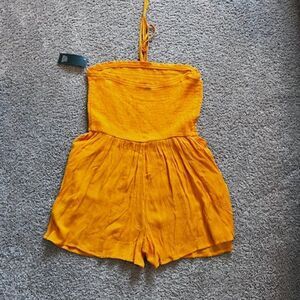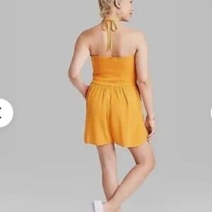 Women's Sleeveless Woven Smocked Romper - Wild Fable Mango Orange Medium and Large