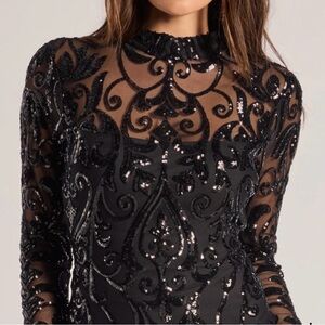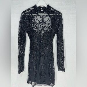 NWT windsor Kaelie Sequin Sheer Mesh Long Sleeve Mini Dress size S