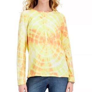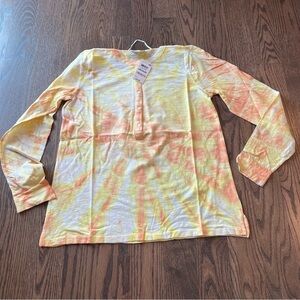 NWT woman’s 5 button up Cotton Tie-Dyed Print crew Long-Sleeve Top size Medium