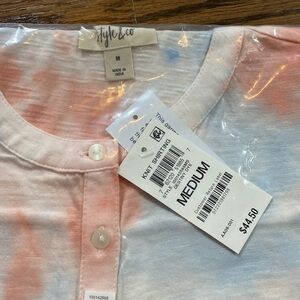 NWT woman’s style & co tie dye button up Henley knit shirt size medium