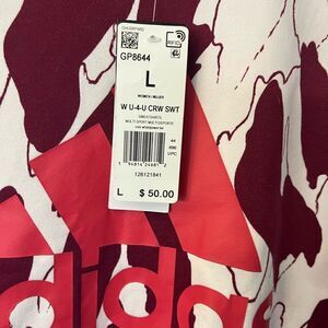 NWT women’s ADIDAS size L crewneck sweatshirt. White/berry.