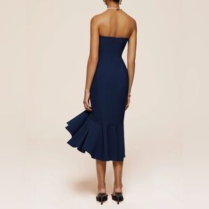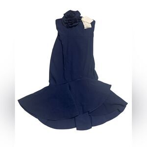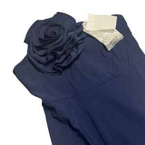 NWT women’s FEHAUTE Dark Blue 3d Floral Strapless Mermaid Midi Dress SZ large