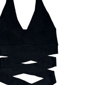 NWT women’s FORTE FORTE Italian my knit black cropped waist tie tank top size 2