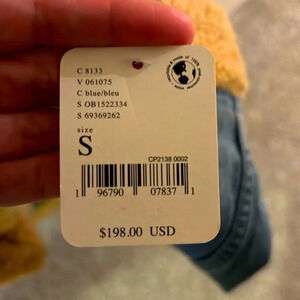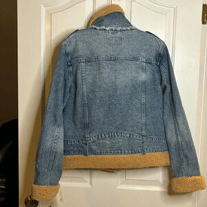 NWT women’s FREE PEOPLE blue denim jacket with faux fur trim size small