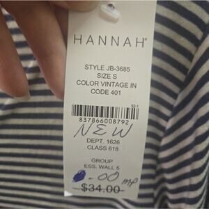 NWT women's Small blue & white striped tee shirt. Brand Hannah. Seller 89 9 oz