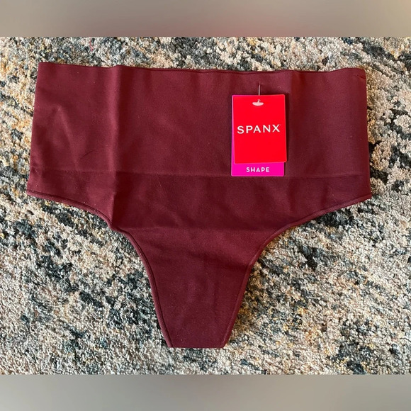 NWT womens Spanx Everyday Shaping Thong Panty in Sangria color