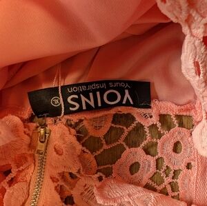 New with tags women's Your Inspiration pink sleeveless lace dress. Size extra large. Features zip back, lace bodice and high/low design in front.