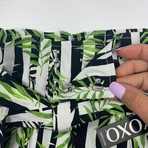 NWT xoxo Stripe & Leaves Print High Rise Paper Bag Style Shorts w Tie Waist S