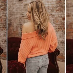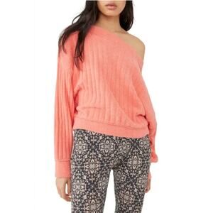 NWT$110 Free People Cabin Fever Convertible Neck Pullover Top Sweater In Coral