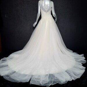 NWT~$1195~BONNY BRIDAL~8/10~TWO PIECE IVORY LACE WEDDING DRESS TRAIN SKIRT