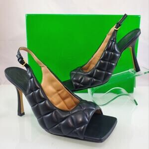 NWT$1,250 Bottega Veneta Black Quilted Padded Slingback Heeled Sandals Sz 8.5