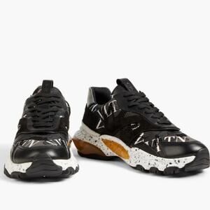 NWT$1,300 Valentino Garavani Bounce Camouflage Print Leather Suede Mesh Black Sneaker