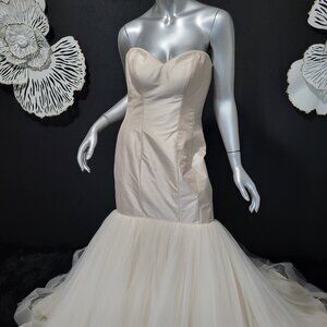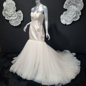 NWT~$1880~JUSTIN ALEXANDER~6/8~PEARL PINK STRAPLESS MERMAID WEDDING DRESS~STUNNING COLOR. CORSET BUST. VERY FULL LAYERED TRAIN. BACK BUTTONS AND ZIPPER FOR CLOSURE. SIZED A 10. HOWEVER FITS MORE LIKE A SIZE 6 TO 8. SEE SIZE CHART POSTED FOR MEASUREMENTS. GORGEOUS IN PERSON.