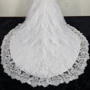 NWT~$1895~ALLURE BRIDALS~6/8~WHITE RHINESTONE MERMAID FIT & FLARE WEDDING DRESS~BREATHTAKING EMBELLISHED RHINESTONE LACE LIGHTLY PADDED BUST. SHEER SIDE EMBELLISHED INSET. LAYERS OF TULLE FOR FULLNESS. BACK ZIPPER. BACKLESS. STUNNING CRYSTAL AND COVERED BUTTON DETAILING FROM BACK ZIPPER TO THE BOTTOM OF THE TRAIN DOWN THE BACK. SIZE 8. HOWEVER THIS MAY FIT MORE LIKE A SIZE 6. THE MANNEQUIN IS A SIZE 4 AND IT COULD ALMOST FIT HER. PLEASE SEE ALLURE SIZE CHART POSTED FOR MEASUREMENTS. MAY BE A FEW MISSING OR LOOSE EMBELLISHMENTS. HOWEVER IT IS VERY HARD TO TELL. THE DRESS IS BREATHTAKING IN PERSON.