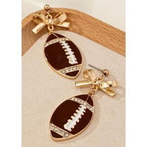 NWT 18K Bling Rhinestone Gold Toned Bowknot Football Dangle Earrings