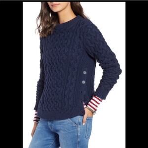 NWT 1901 CHUNKY BLUE CABLE KNIT SWEATER SIZE XS BUTTON DETAILS