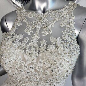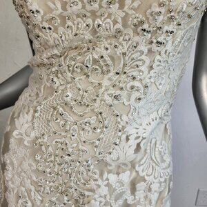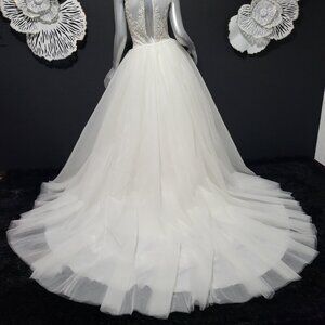 NWT~$2100~LO'ADORO~2/4~IVORY OFF WHITE RHINESTONE DETACHABLE TRAIN WEDDING DRESS