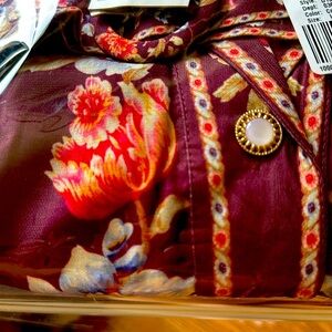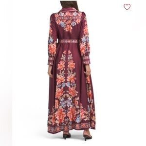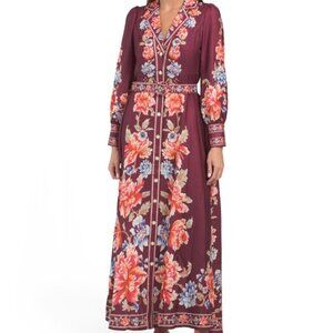 NWT$250 Dalia MacPhee Long Sleeve Maxi Belted Burgundy Floral Shirt Dress LARGE