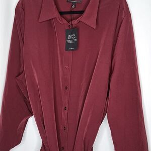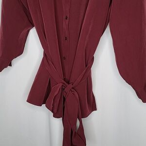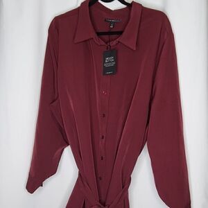NWT 26 Lane Bryant Tie-waist Tunic Blouse Button up wine/maroon color.'Hidden buttons button up. Measurements approximately shoulder to hem 32.5" under arm to under 29" belt 100" weight 1lb 4oz