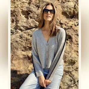 NWT 27 Miles Malibu Leila Wool Cashmere Cardigan Tan/Black XS