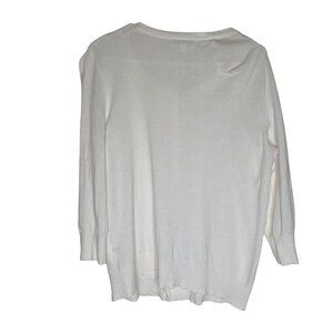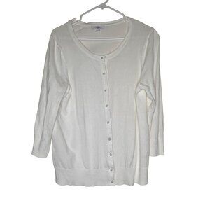 NWT$29 Roz & Ali Button-Up Cardigan Sweater Womens L White 3/4 Sleeves Lightweig