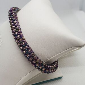 NWT 3 Strands Purple & Irridescent Beaded Bracelet