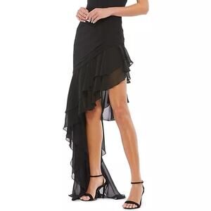 NWT$348 Mac Duggal Ieena Black V-Neck Ruffle Asymmetric Sheath Dress