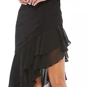 NWT$348 Mac Duggal V-Neck Ruffle Asymmetric Mini/Maxi Hem Sheath Dress Sz 2 XS-S