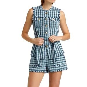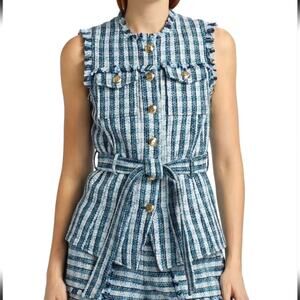 NWT$365 Cinq a Sept Matilda Tweed Reenee Vest Blazer in Navy Multi Sz XS
