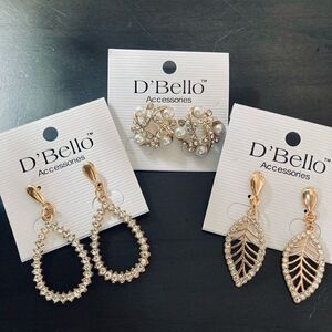 NWT 3-pair Gold Crystal Jeweled Earrings Lot