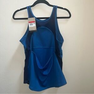 This Nike Yoga Dri-FIT Women's Tank Top in size L is perfect for your next yoga session. The crew neckline and slim fit provide comfort and flexibility during any pose. The open back design adds a stylish touch to this blue tank top, making it suitable for both casual and activewear occasions.
