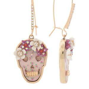 BETSEY JOHNSON Pink Sugar Skull & Flower Crown Halloween Day of the Dead Earrings