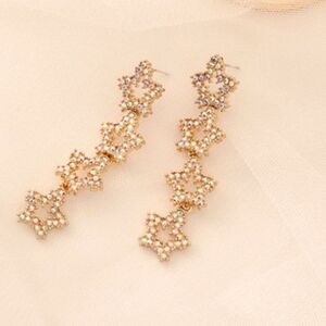 Beautiful shimmering 4 star pierced earrings in gold with gorgeous iridescent pink crystals that sparkle and shine like diamonds. The pictures do not do justice as they really sparkle. Makes you feel like a star. The second picture is to show size.