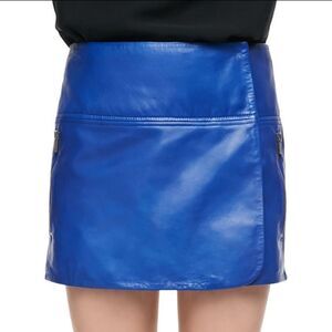 Diane von Furstenburg hits the mark with this freshly modern leather skirt in dark lapis adorned with zippers.