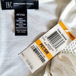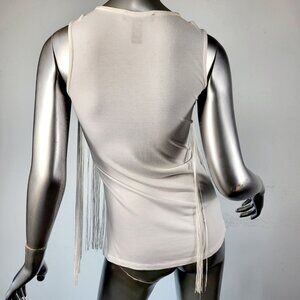 NWT~$60~INC~INTERNATIONAL CONCEPTS~S~WHITE FRINGE SLEEVELESS T-SHIRT TANK TOP